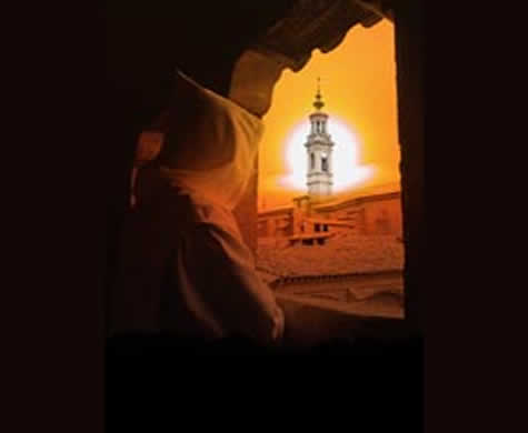 En la capilla brilla apenas la luz de la pequeña lámpara que arde ante el tabernáculo. Reina un silencio total, no interrumpido ni siquiera por los blandos pasos de los religiosos, que van colocándose en sus puestos en el coro y quedan allí inmóviles como estatuas y sumidos en profunda oración.